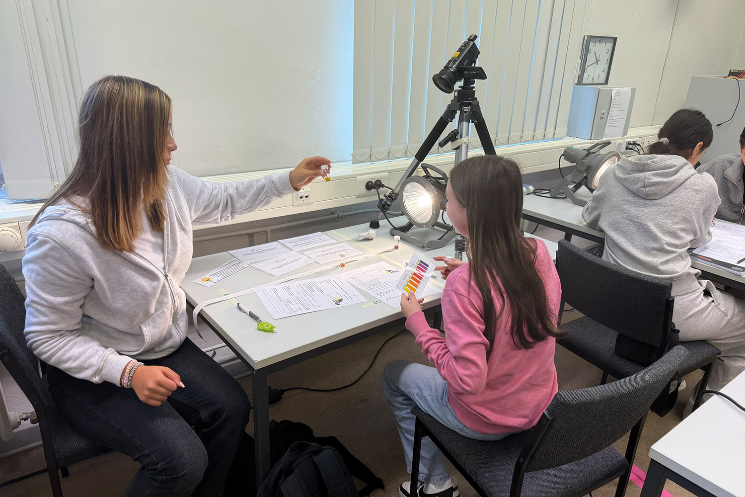 Die Schülerinnen und Schüler untersuchen den Einfluss von Licht auf die Photosynthese-Aktivität von Algenbällchen. Bildnachweis: IFF/TU Braunschweig Previous image Next image Please note the copyright of this image.