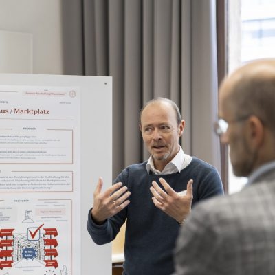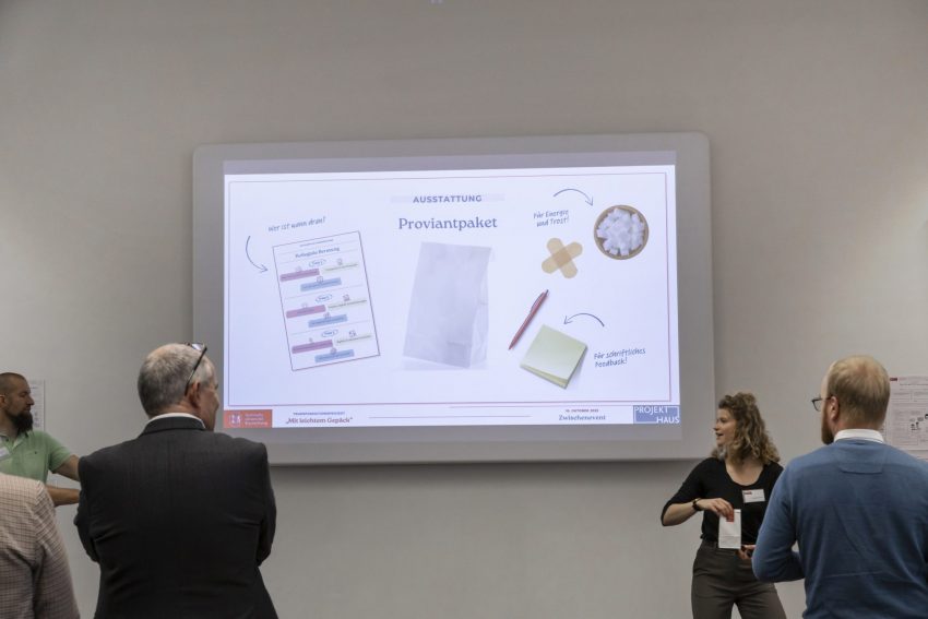 Every expedition has its stopover: a moment when the team pauses to check the route, recharge their batteries for the next few kilometres, and discover amazing things in their luggage. That’s exactly how the interim event of “Mit leichtem Gepäck” felt: Last Friday, the nine teams gathered in the open space, ready to present their prototypes, encourage each other, and boldly embark on the final seven weeks of the project phase, which involves testing the prototype ideas. Dietmar Smyrek, the client and project initiator, is enthusiastic about the teams: “The format chosen by the project house has triggered an unimaginable desire for innovation and a wealth of great ideas among the expedition participants. The teams were wonderfully productive and created great prototypes. Now it’s time for testing, and I hope that many of the prototypes will be realised.”