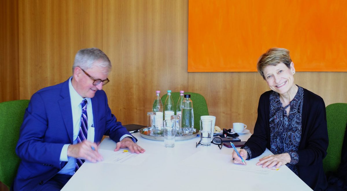 TU-Präsidentin Prof. Angela Ittel und Dr. Alan Shepard, Präsident der Western University, beim Unterzeichnen des Kooperationsvertrags. Bildnachweis: Ute Kopka/TU braunschweig