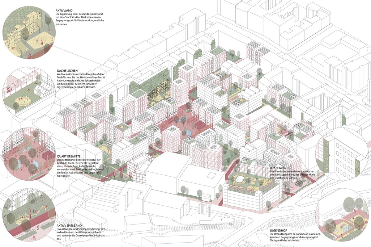 Der Preis des Wissensnetzwerks Stadt und Handel stand dieses Jahr unter dem Motto „Jugend und Innenstadt“. Im Fokus stand dabei die Frage, wie für Kinder und Jugendliche in Innenstädten neue Freiräume und Beteiligungsformate entstehen können. Dana de Voß prämiertes Projekt entstand im Rahmen des Masterentwurfs „Zuhause im Böttgerblock“ am ISU – Institute for Sustainable Urbanism und schafft einen städtebaulich-architektonischen Rahmen, der das gegenseitige Kümmern und Aufpassen in Nachbarschaft und Stadt ebenso fördert wie die größtmögliche Freiheit der Kinder. Diese zeigt sich in Räumen, die unterschiedlichste Nutzungen zulassen: Orte zum Verstecken und Entdecken, für Abenteuer und Rückzug sowie für gemeinsames Spiel und Miteinander. Die Preisverleihung fand kürzlich auf der 45. urbanicom Studientagung in Köln statt.