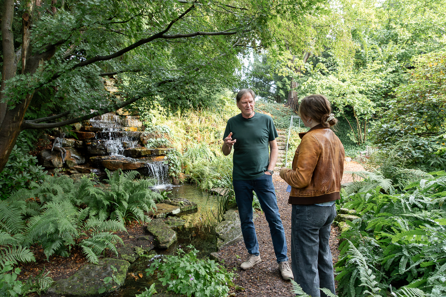 Michael Kraft an seinem Lieblingsort im Botanischen Garten, dem Wasserfall. Bildnachweis: Kristina Rottig/TU Braunschweig