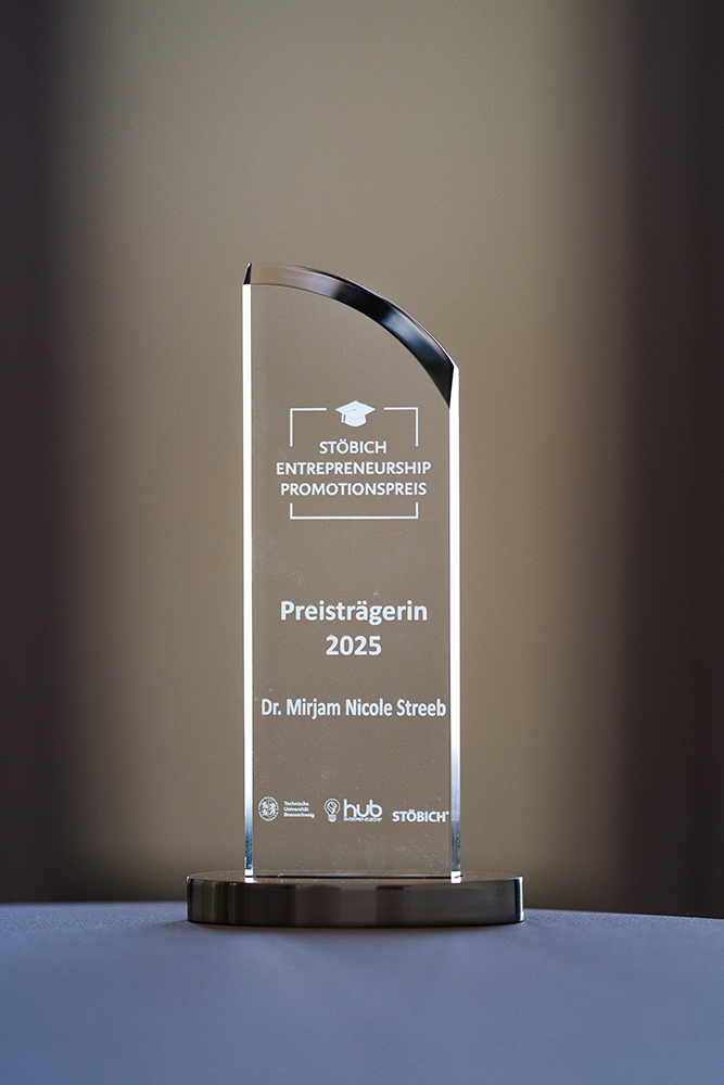 Der Stöbich Entrepreneurship Promotionspreis 2025. Bildnachweis: Eric Haase/Entrepreneurship Hub