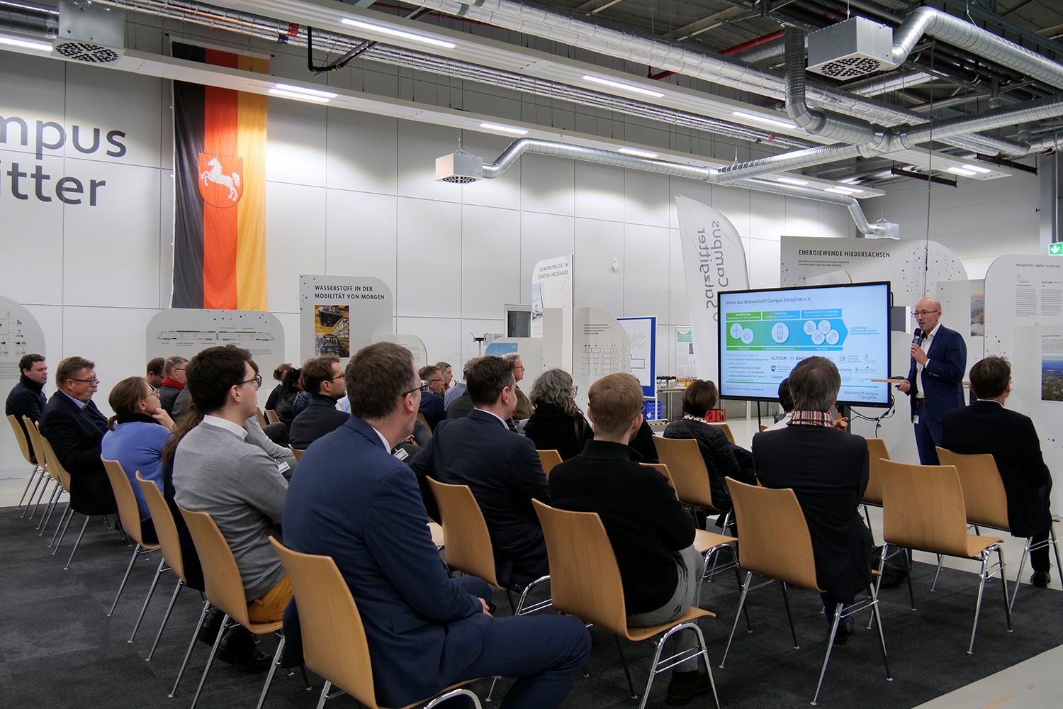 Nach einer offiziellen Begrüßung durch Michael Gensicke, Vorstandsmitglied des Wasserstoff Campus Salzgitter e. V., sowie Wirtschaftsdezernent Jan Erik Bohling als Vertreter der Stadt Salzgitter erhielten die Gäste einen Überblick über die Aktivitäten, Forschungsarbeiten und neuesten Entwicklungen der Wasserstofftechnologie am Wasserstoff Campus Salzgitter. Als Leuchtturmprojekt für die Region ist der Campus ein wichtiger Baustein für die Energiewende in Deutschland.