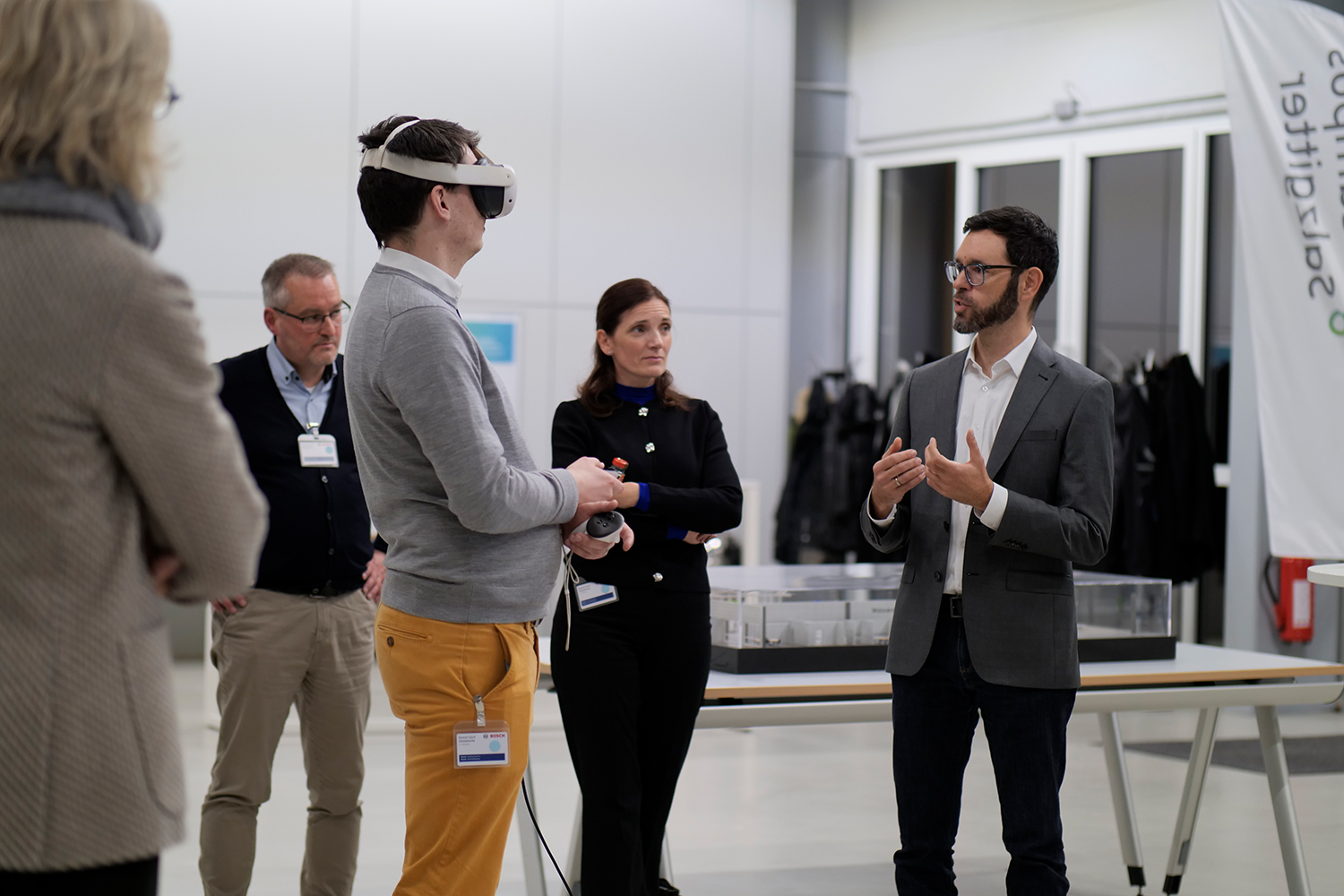 Welche Technologien und strategischen Ansätze die Fabriktransformation unterstützen, demonstrierte die Robert Bosch Elektronik GmbH als Teil des Wasserstoff Campus. So konnten im Jahr 2024 bereits rund 30 Prozent des Eigenstrombedarfs durch die seit Mitte 2023 vollausgebaute, insgesamt 40.000 Quadratmeter große Photovoltaikanlage abgedeckt werden. Darüber hinaus nutzt der Standort regionale Fernwärme vom Stahlwerk der Salzgitter AG und setzt auf verschiedene Energiespeicherlösungen wie Kältespeicher sowie Batteriespeicher aus wiederaufbereiteten Elektro-Fahrzeug-Batterien.