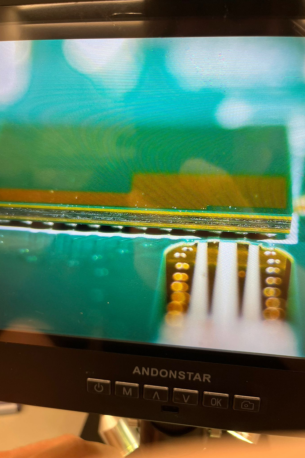 Blick auf einen Radar Transceiver 140 GHz, packaged von Infineon. Bildnachweis: Martin Maier/TU Braunschweig