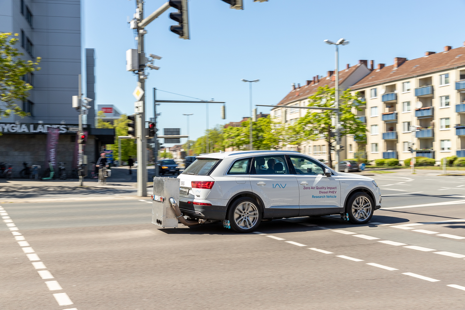 Zusätzlich zu stationären Messsystemen und Messungen in der Höhe (Ballon) werden mit einem Testfahrzeug der IAV während der Messkampagne zusätzliche, mobile Feinstaub-Daten gesammelt. Bildnachweis: Kristina Rottig/TU Braunschweig